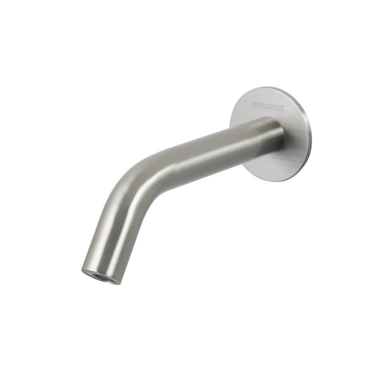 Stainless steel wall mounted electronic tap for wash basins with an infrared detection embedded in the end of the spout, for a neater and refined aesthetic.