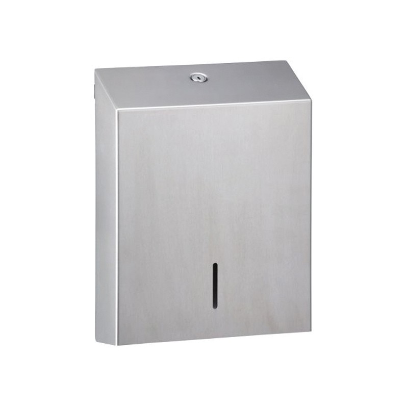 Stainless steel brushed wall-mounted paper towel dispenser, thickness 83 mm for space saving, capacity up to 500 sheets
