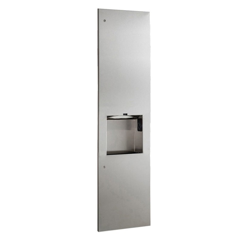 Recessed 3-in-1 unit with paper dispenser, hand dryer, and waste bin