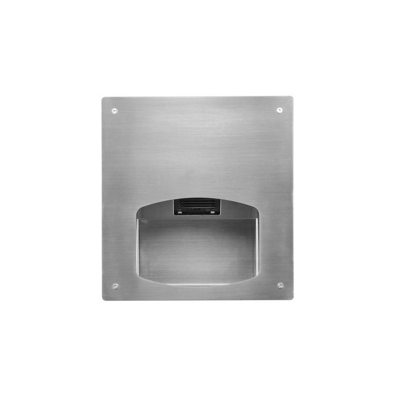 Recessed automatic hand dryer in stainless steel by infrared detection.