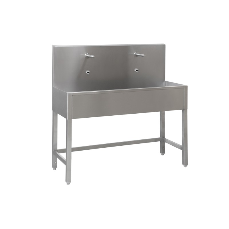 COLLECTIVE WASH BASIN ON FOOT IN STAINLESS STEEL FROM 2 TO 5 PLACES, WITH ELECTRONIC TAPS INTEGRATED