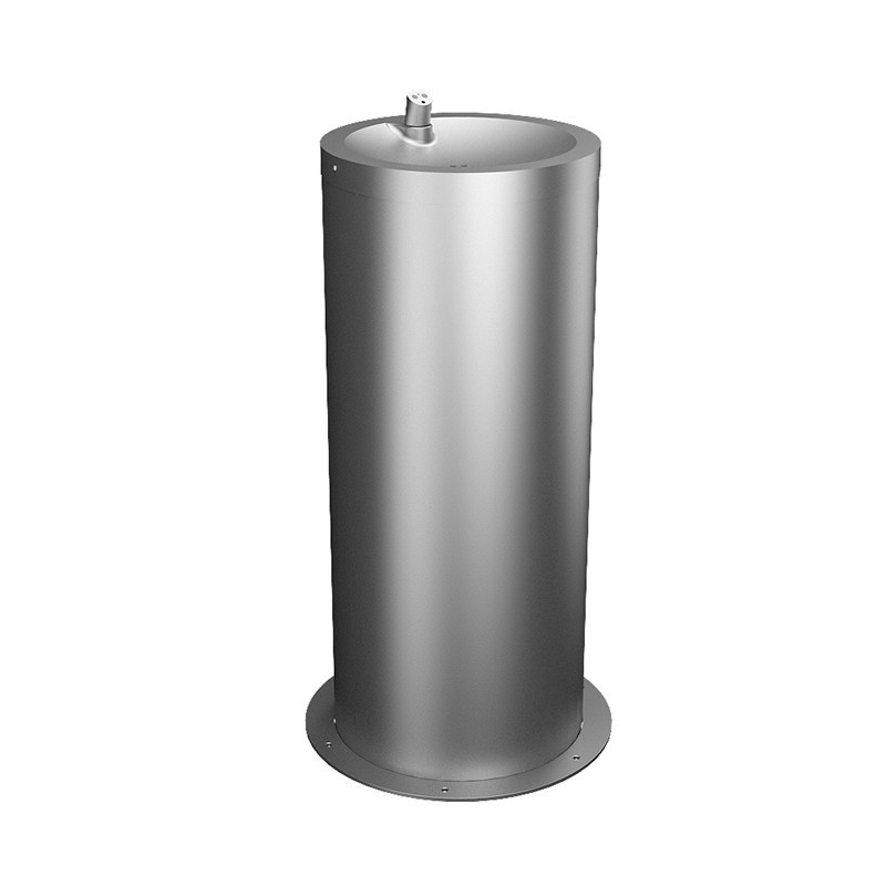 Drinking fountain on foot in stainless steel with faucet touch-free
