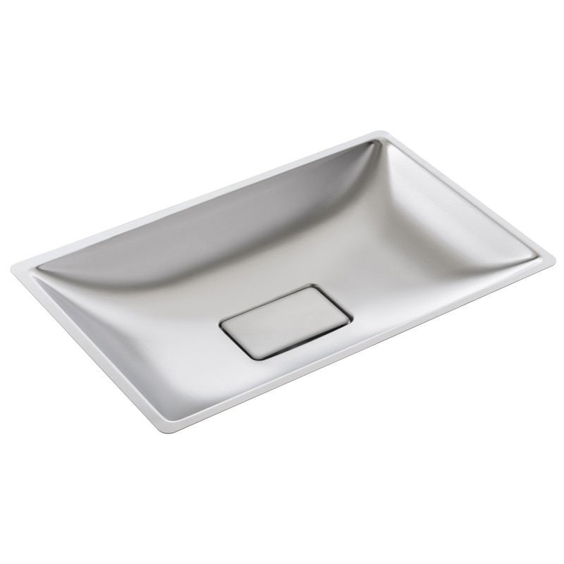 Rectangular stainless steel vanity bowl for flush or under mounting with concealed waste