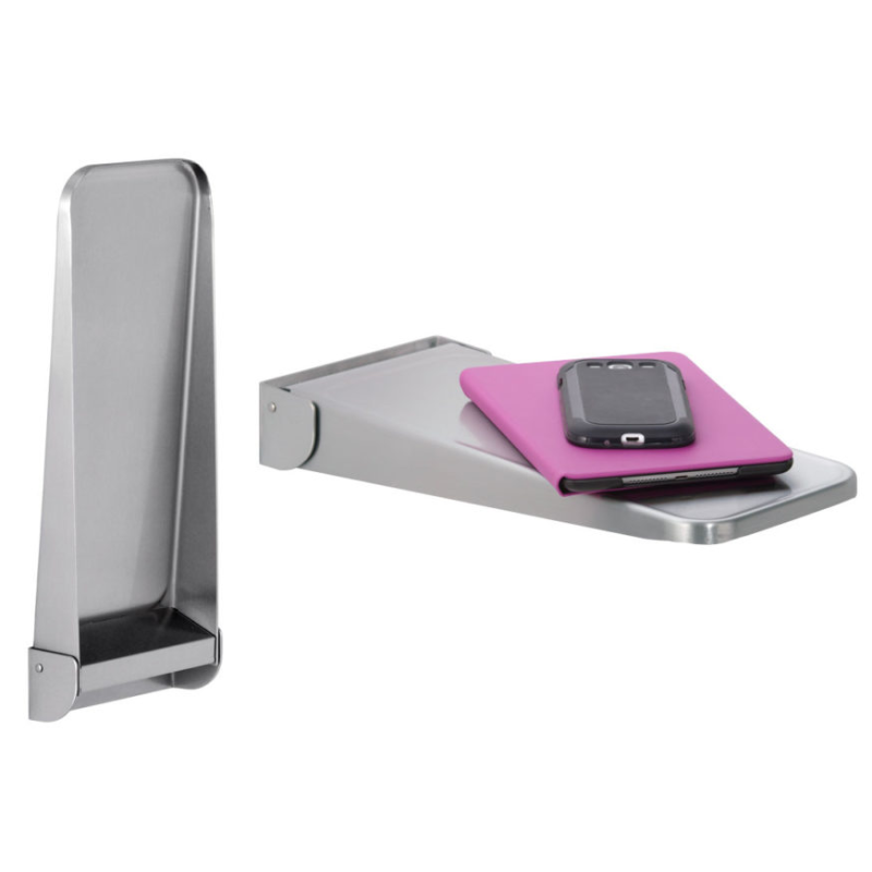 The folding shelf automatically returns to the vertical position when the item is removed.