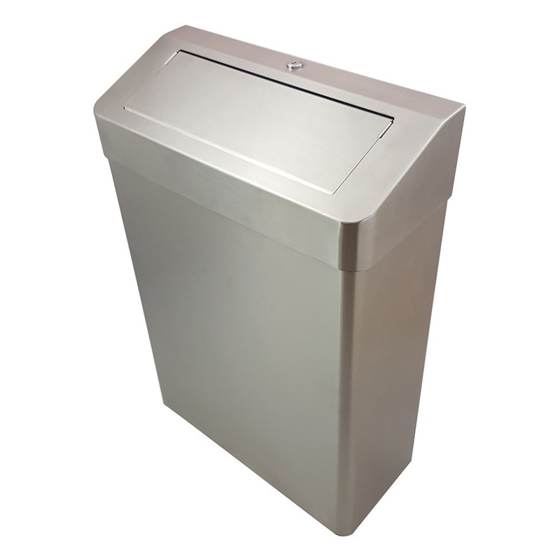Waste receptacle in stainless steel to be placed on floor or wall with open PUSH lid