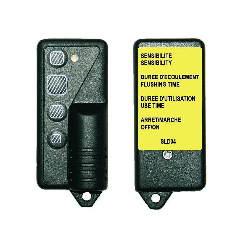 Parámetros ajustables por mando de distancia SLD04: duración de la descarga de 0,5 a 15,5 s, sensibilidad de detección, ON / OFF, activación e intervalo de aclarados periódicos.