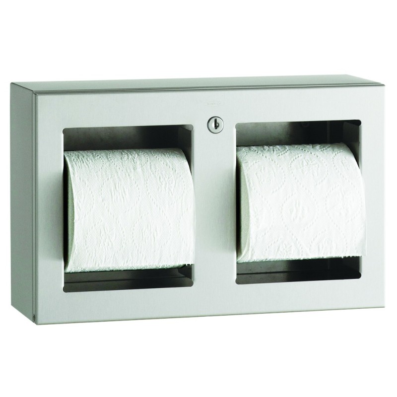 Porta rollos doble de papel inodoro de acero inoxidable, totalmente soldado.