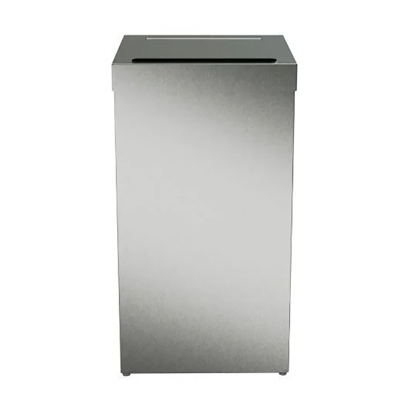 La papelera de acero inoxidable con acceso tipo sas y contenido fuera de la vista ofrece una solución robusta y discreta para la eliminación segura e higiénica de los residuos sanitarios.