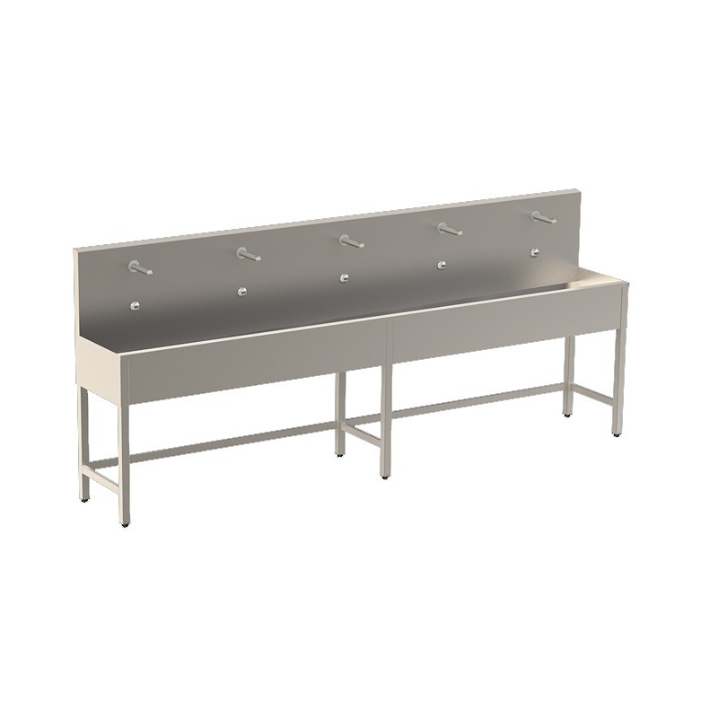 LAVABO COLECTIVO RIGOLE SOBRE PATAS DE ACERO INOXIDABLE DE 2 A 5 PLAZAS, CON GRIFOS ELECTRÓNICOS INTEGRADOS