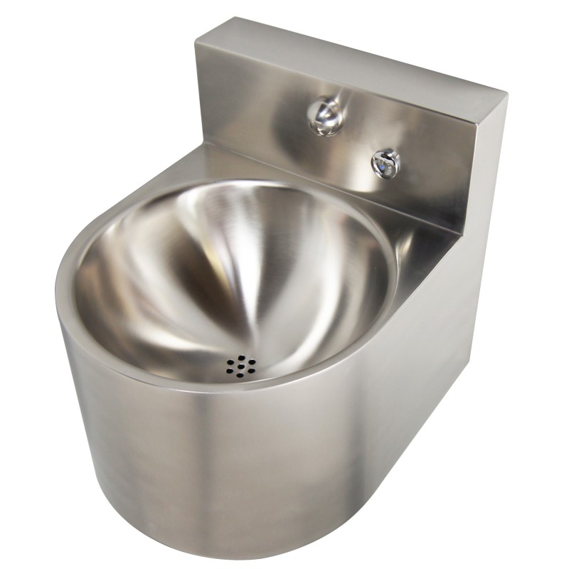 Fregadero antivandálico de acero inoxidable con grifo de pared temporizado integrado de agua fría y caliente