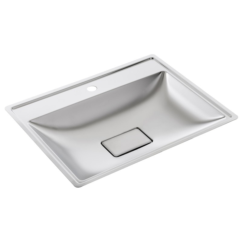 Lavabo rectangular encastrable de acero inoxidable con desagüe oculto con plataforma para grifaría integrada