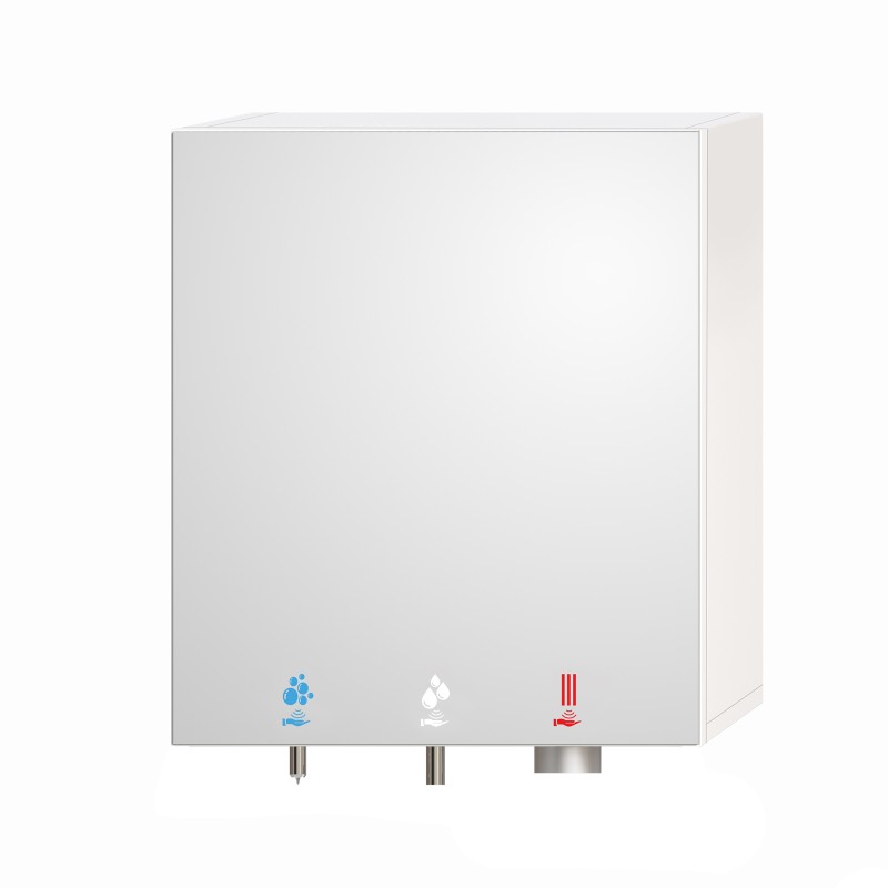 Diseñado para baños públicos, el módulo espejo HYFLO todo en uno ofrece una solución funcional y elegante para majorar la higiene y la comodidad, y reducir el consumo de agua, jabón y energía gracias a su accionamiento automática sin contacto.
