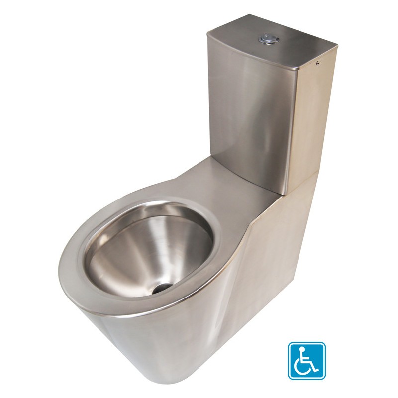 Inodoro monobloque de suelo de acero inoxidable para personas con movilidad reducida con cisterna, en acero inoxidable