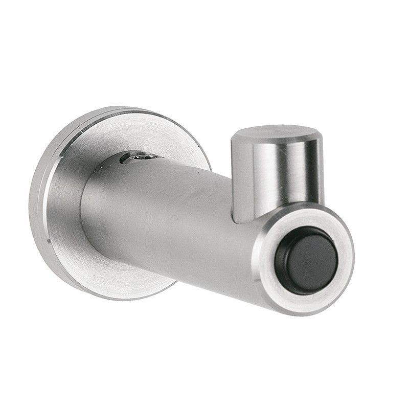 Patère simple murale inox UNO avec butée de porte intégrée, offrant robustesse et durabilité.