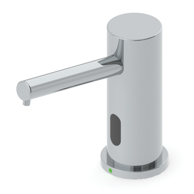 Distributeur électronique ELITE de savon pour lavabo à détection infrarouge, avec voyant led indicateur du niveau de savon pour gain de temps sur la maintenance, sans meuble à ouvrir pour vérification.