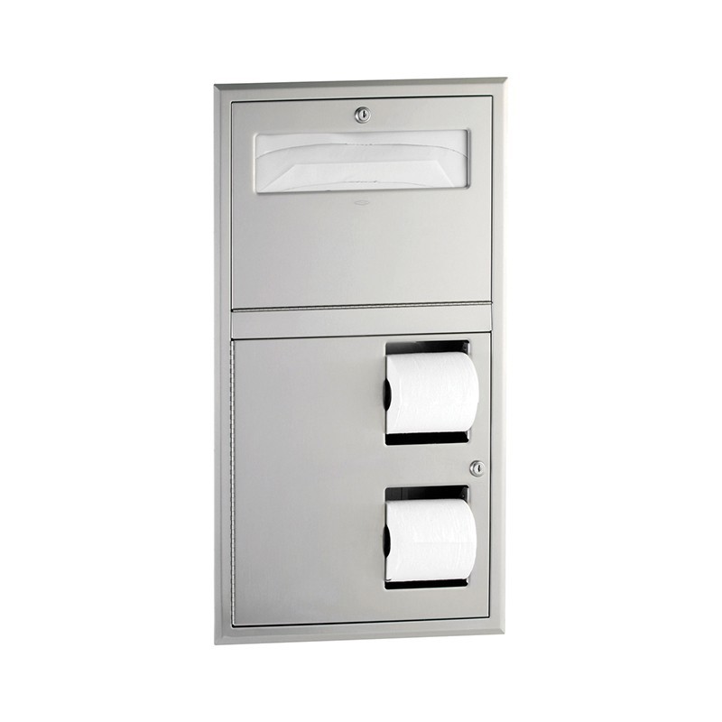 Combiné encastré inox distributeur couvre-sièges WC et double porte rouleau