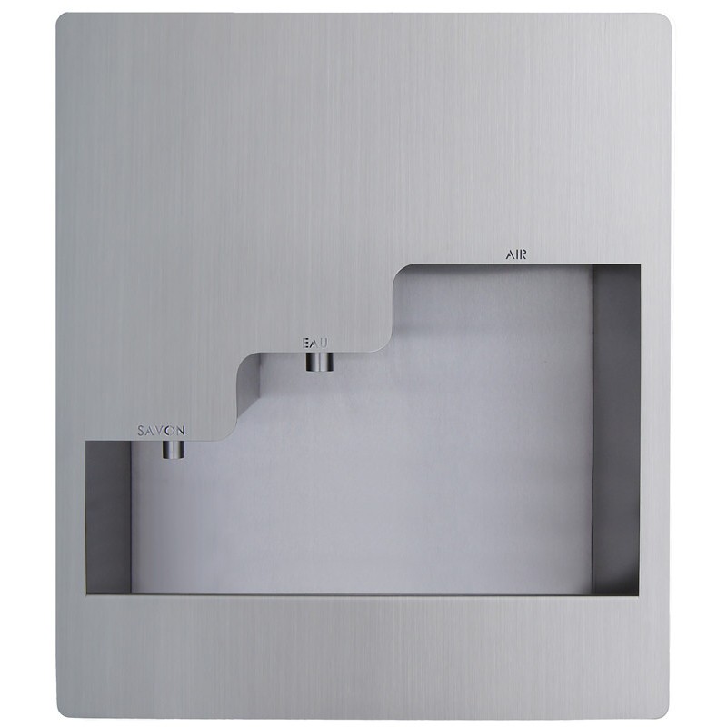 Lave-main encastré inox compact 3en1 SAVON-EAU-AIR pour usage intensif en lieux publics.