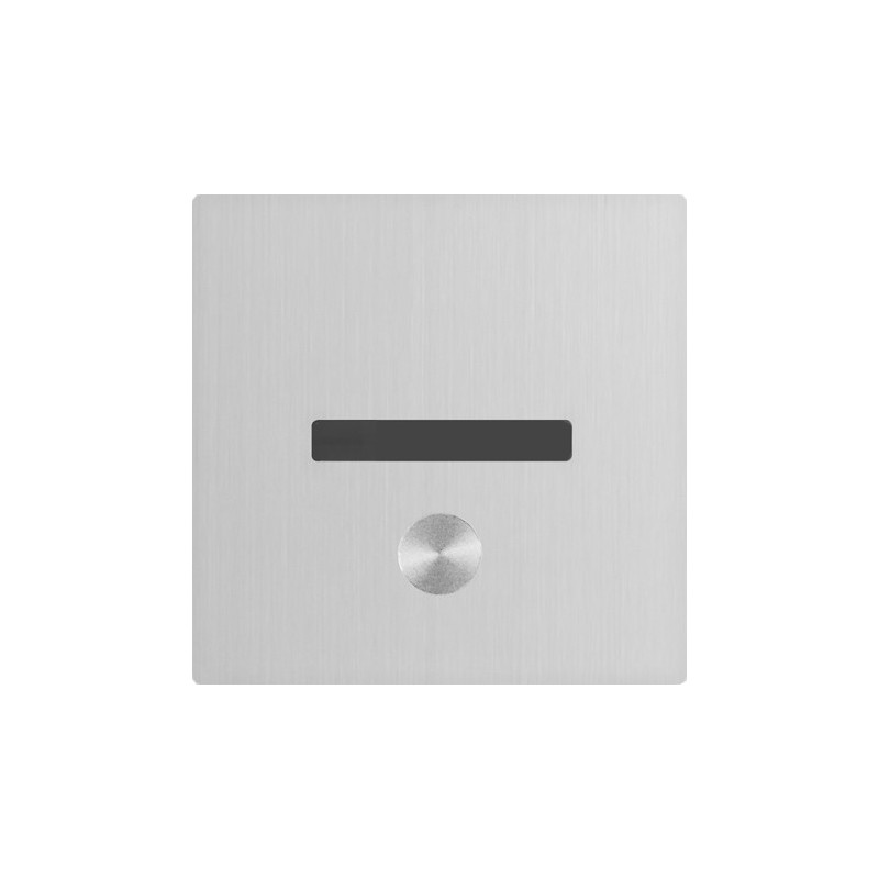 Robinet électronique inox encastré pour rinçage urinoir avec déclenchement automatique par détection de présence ou par bouton manuel.