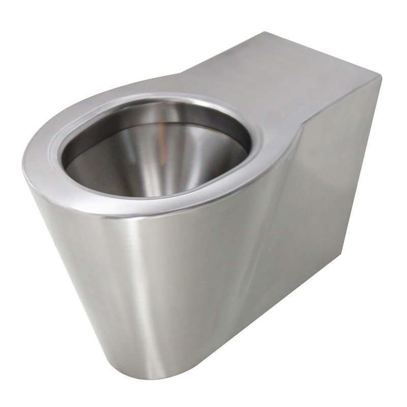 WC au sol inox design et robuste pour réservoir dissimulé ou chasse directe déportée